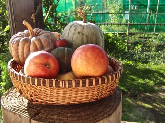 9月に入り、りんごをもらい、なしをもらい、ぶどうをもらい・・・いつのまにやら集まったたくさんの秋の味覚達!木曜クラスのお手伝いスタッフ、ゆかせんせいはご実家は農家さん。美しい実りたちをやまほど抱えてきてくれました!おおきな冬瓜や、赤や黄色がかわいいとうがらしの花束。シンデレラの馬車に変身しそうなカボチャなどなど。どれもつやつや、パンパンに満ちていて、美しいことこのうえなしです。その土地でとれた、その季節のものをいただけることがどんなにすごいことか。あの事故以降身にしみて感じます。