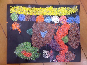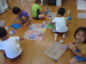 ◎絵の具で色塩を作り、砂絵ならぬ塩絵を描きました。