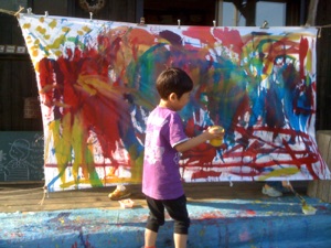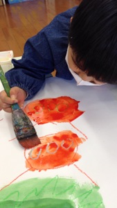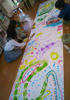 ◎大きな布への絵の具あそびで こいのぼりを作ろう