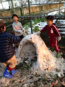 ◎カマクラ作り。雪の日の特別受業!力をあわせた協同制作でした。