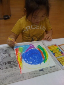 クレヨン、えんぴつ、サインペン。いつもなにかお絵描きしてる。