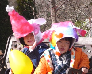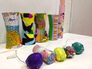 ◎はりこのけん玉作り。こつこつ新聞を貼り重ねて形を固め、仕上げはいろんな紙を使いました。年長さんたちの力と「好き」が年度末に花ひらいた遊んで楽しい、飾って美しい傑作!