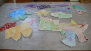 絵の具を溶く、筆で描く、紙を貼る、紙を切る、粘土を丸める、針で縫う・・・